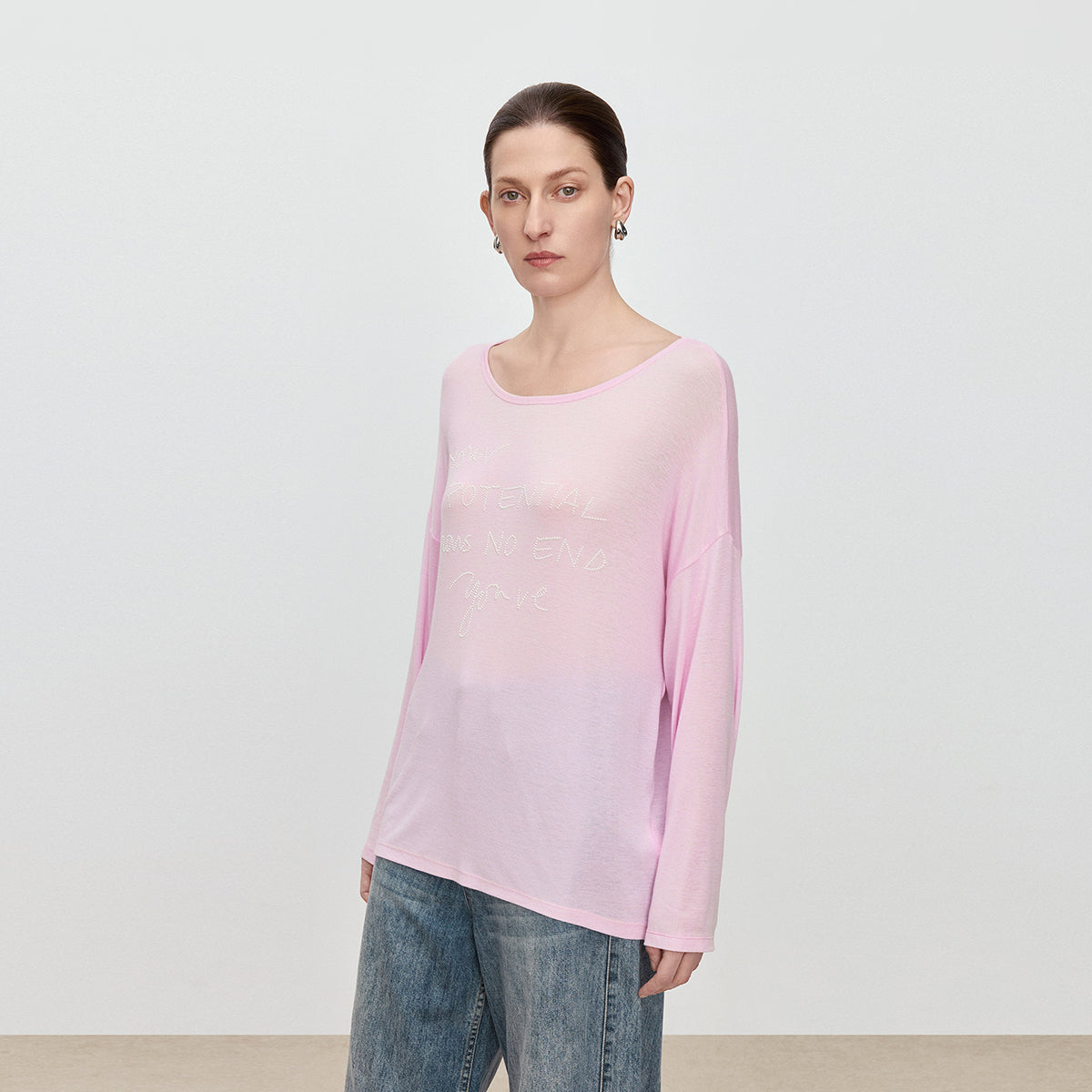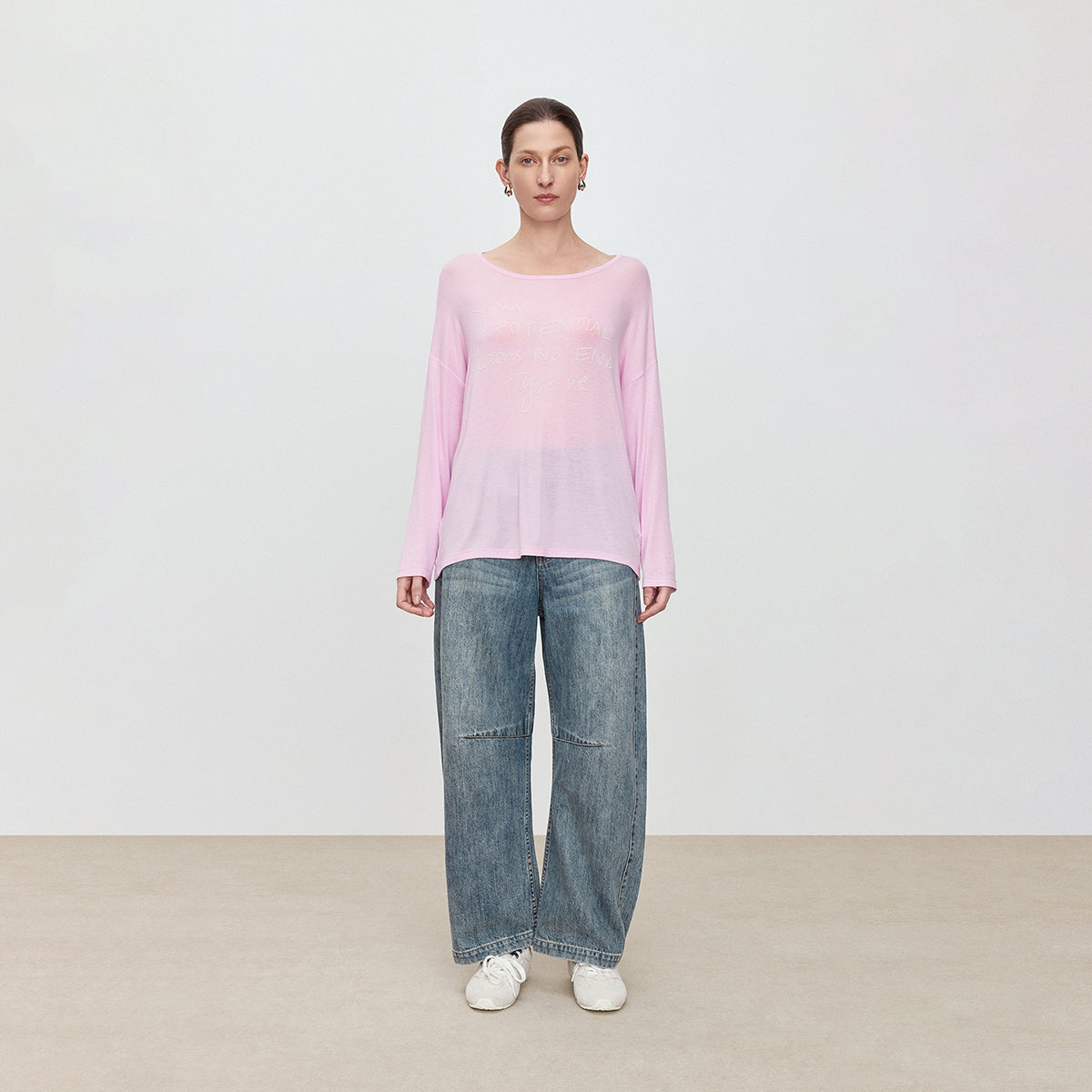 - Faux pearl lettering at chest adds a romantic, elegant touch