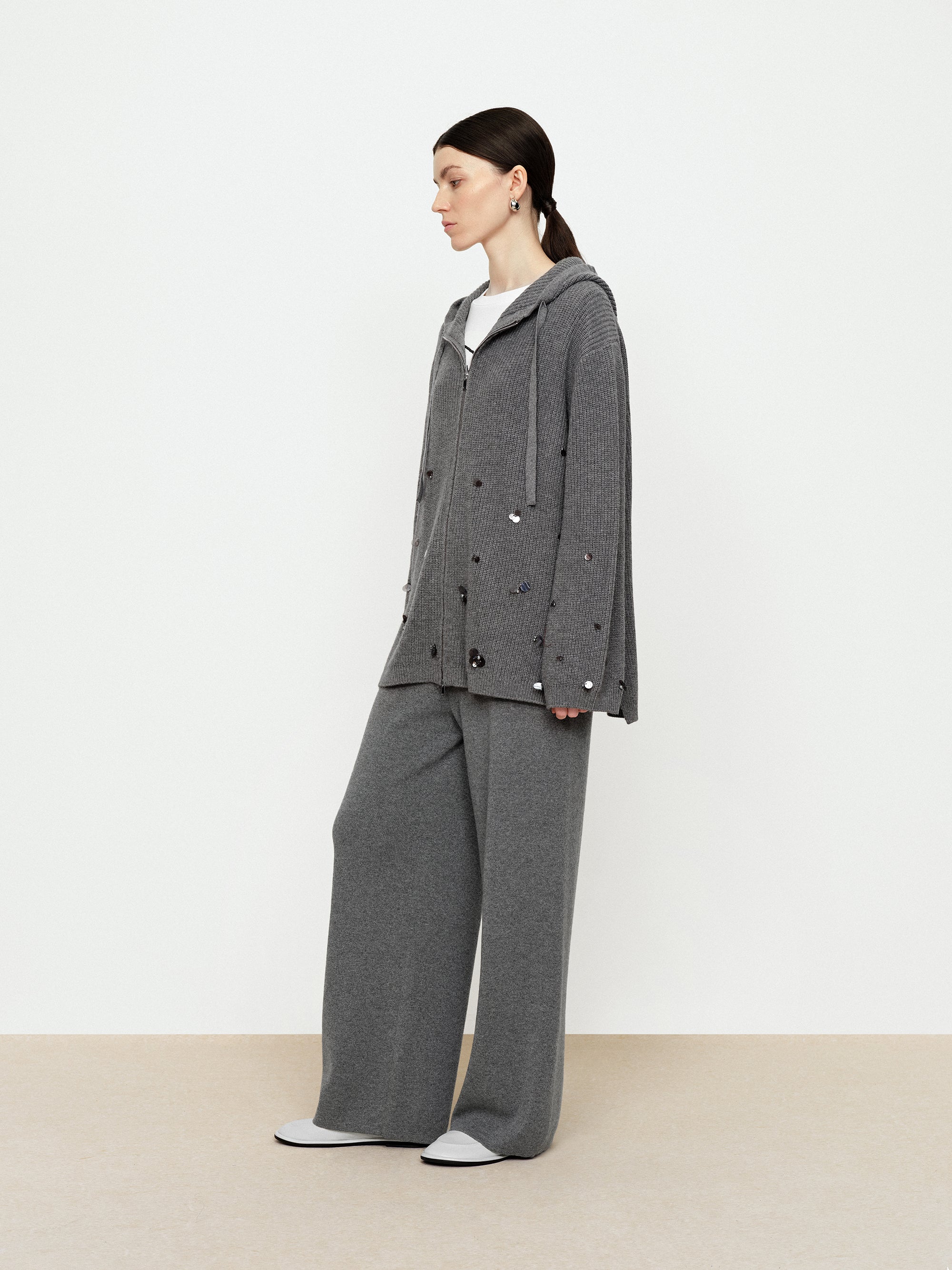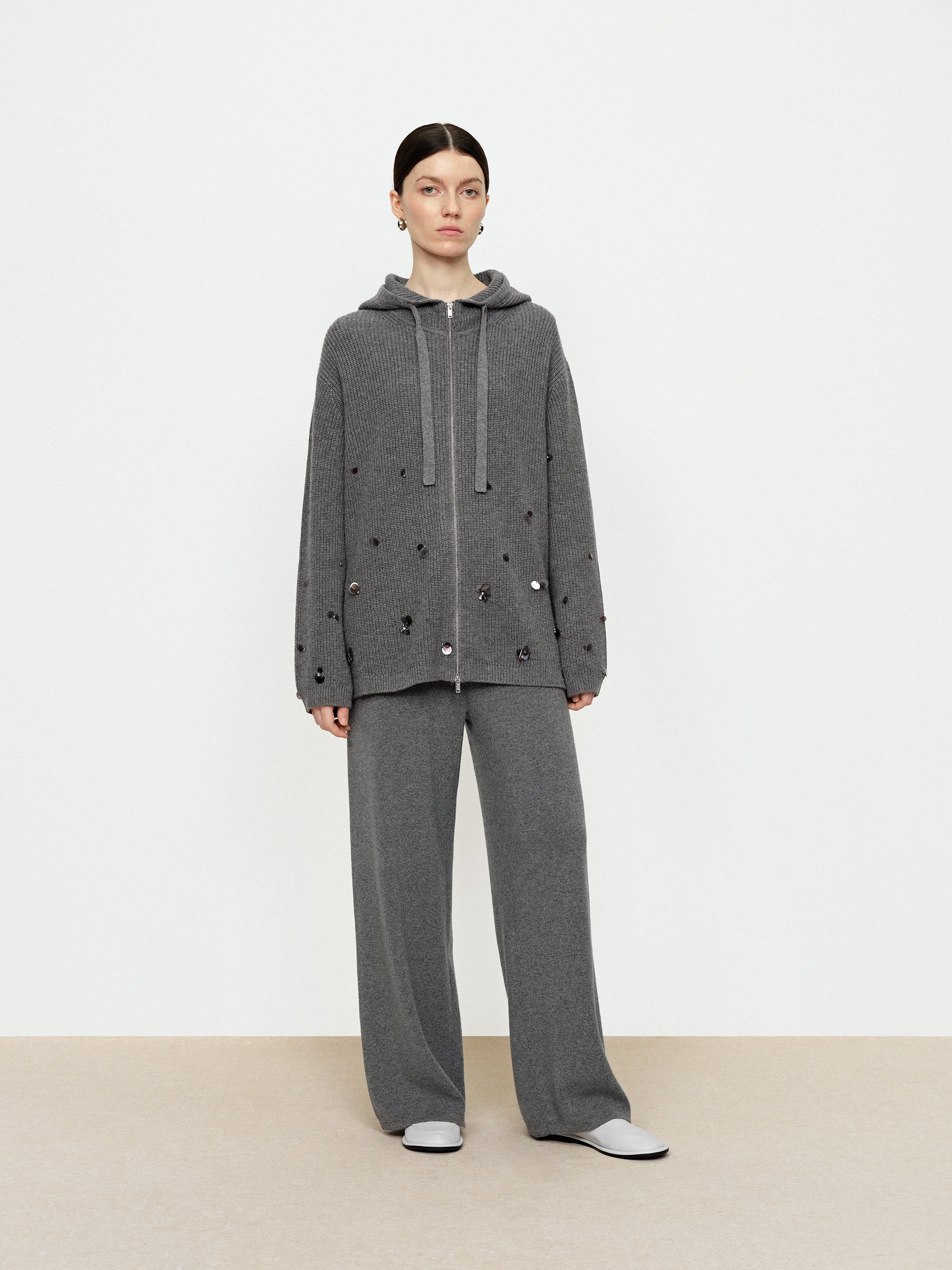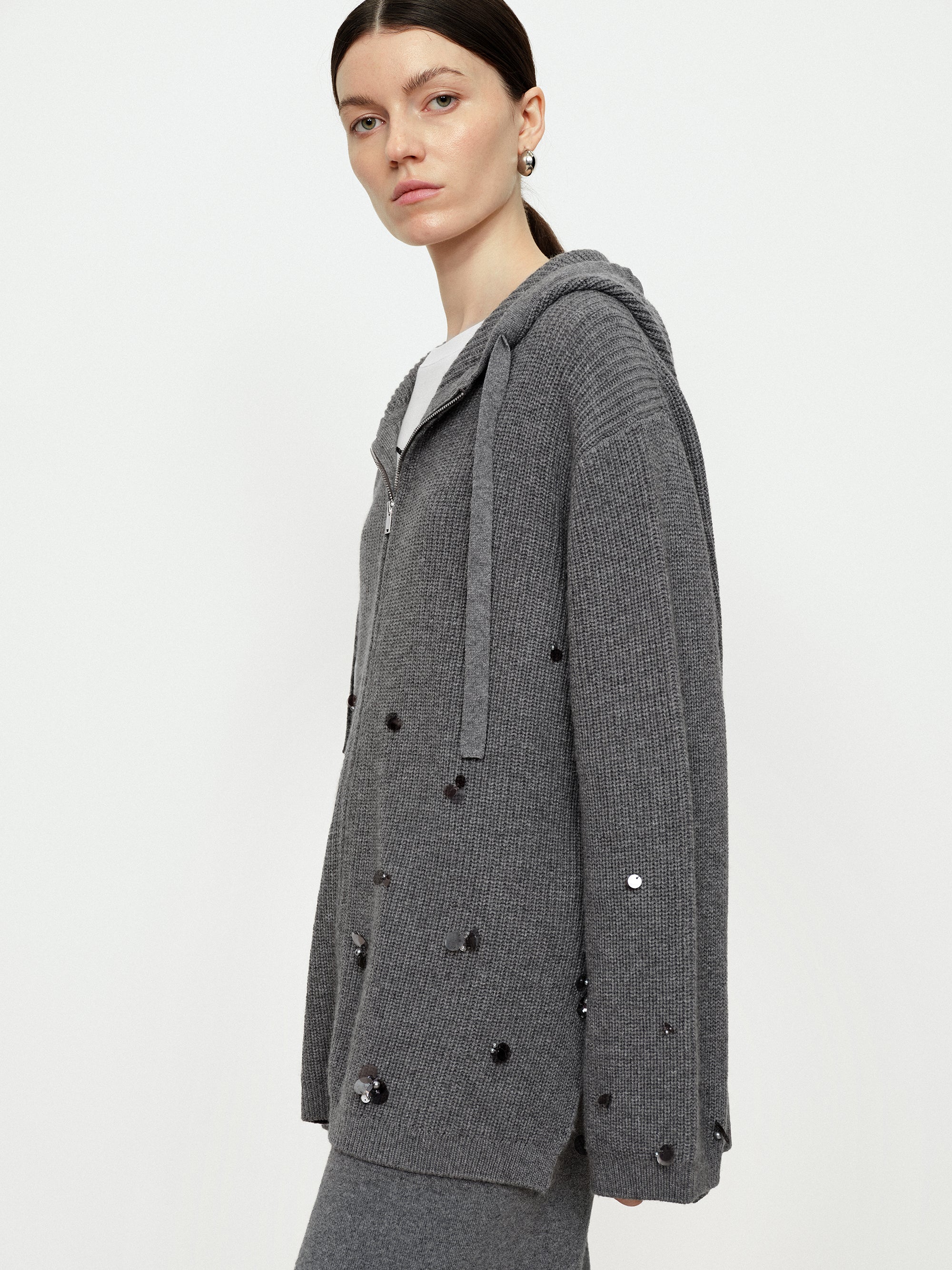 - Flowing Light Nail Bead Hooded Cardigan
