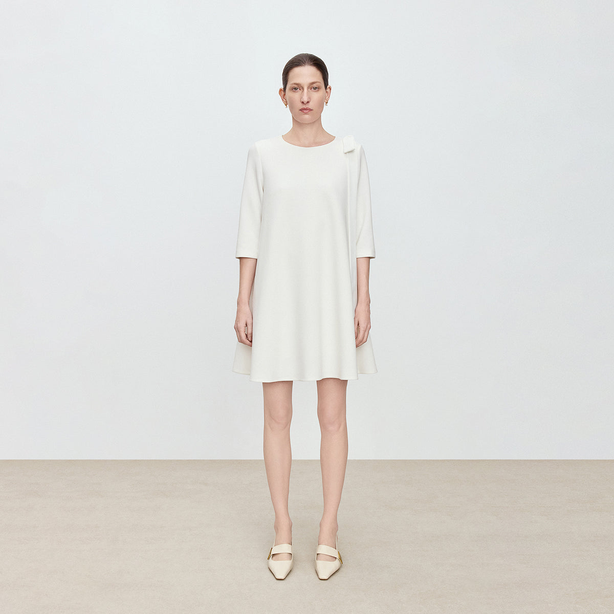 • 3/4 straight sleeves—flatters arms while remaining elegant and practical