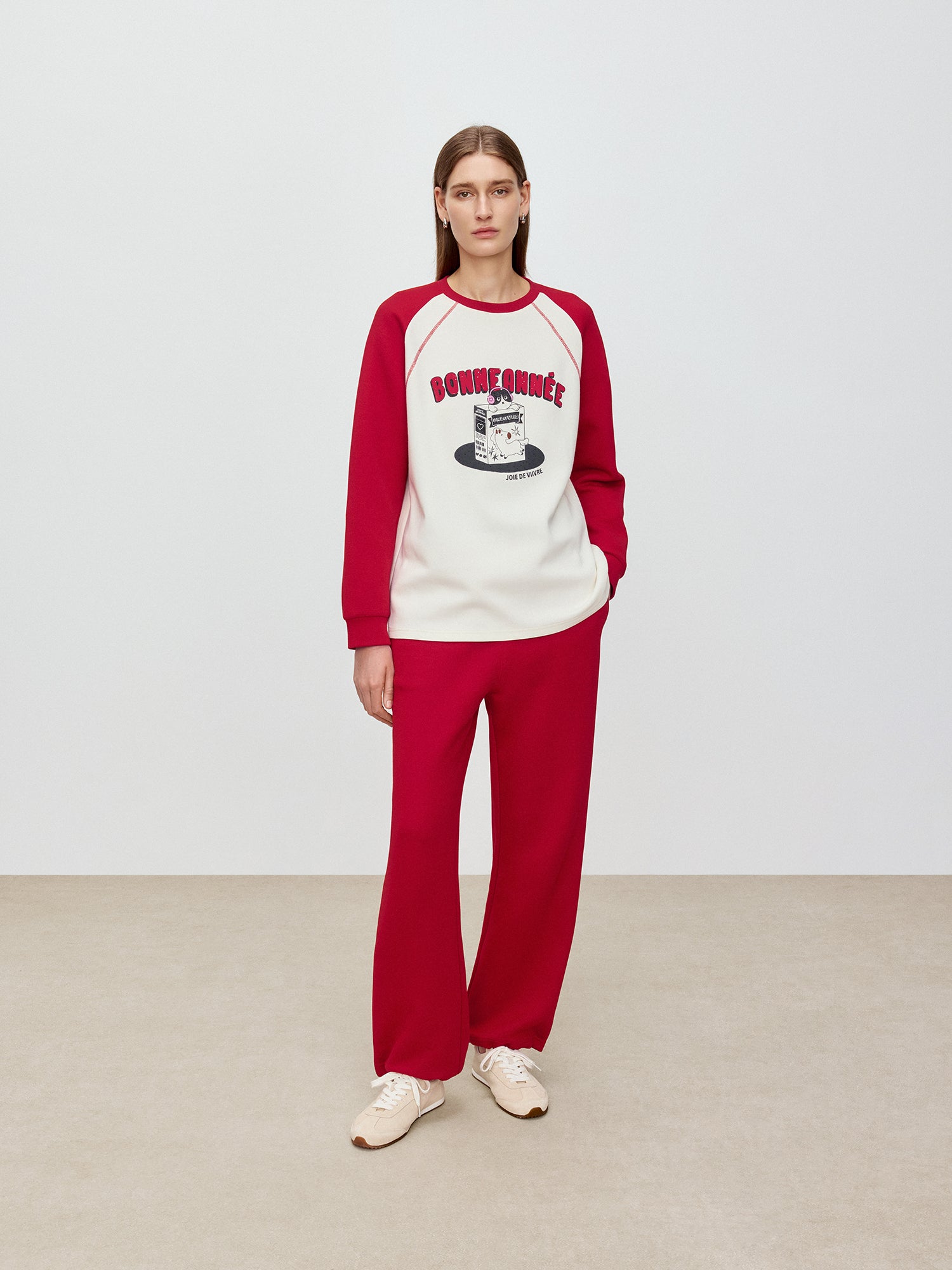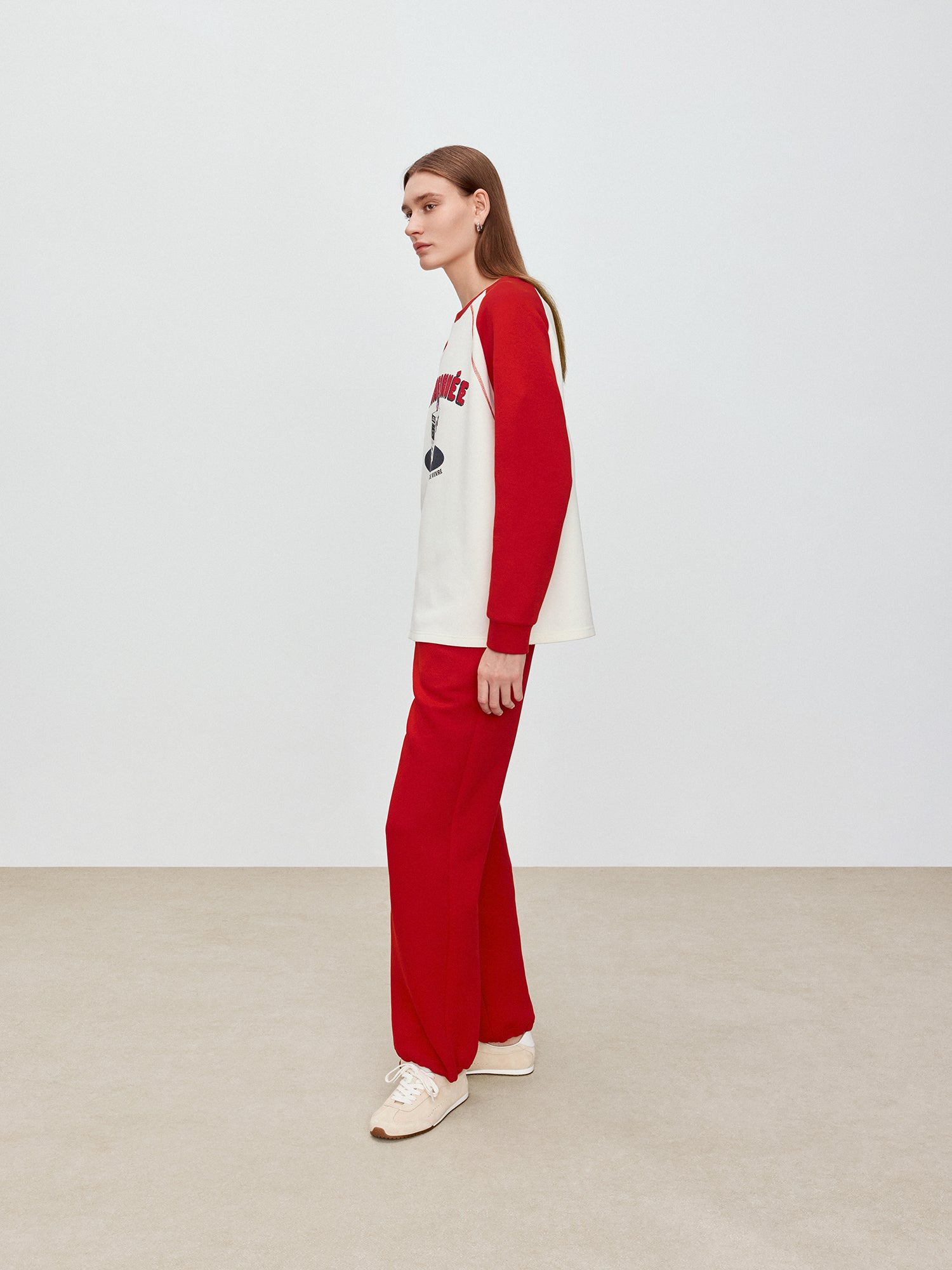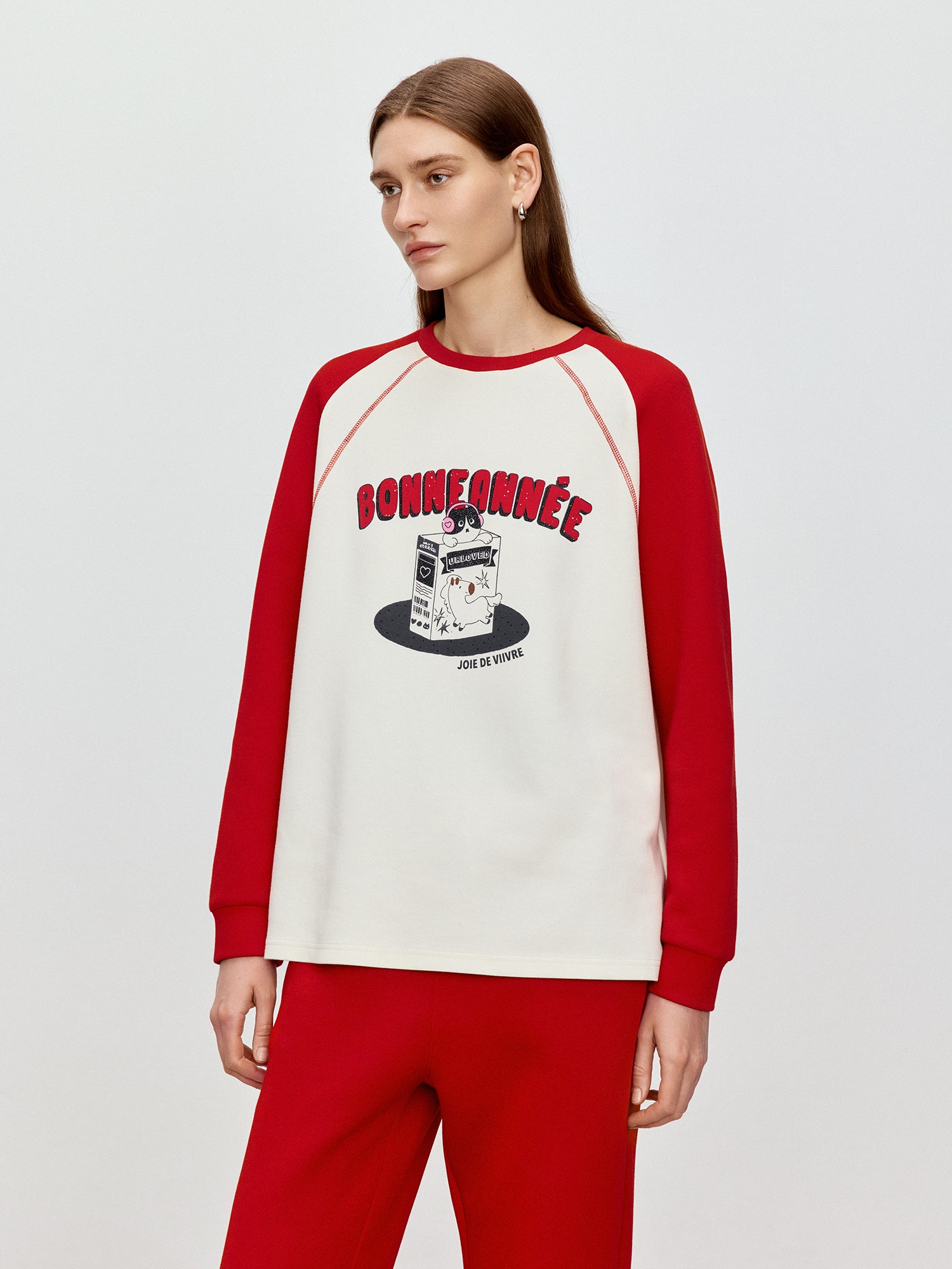 Raglan sleeve design creates an American retro style outfit