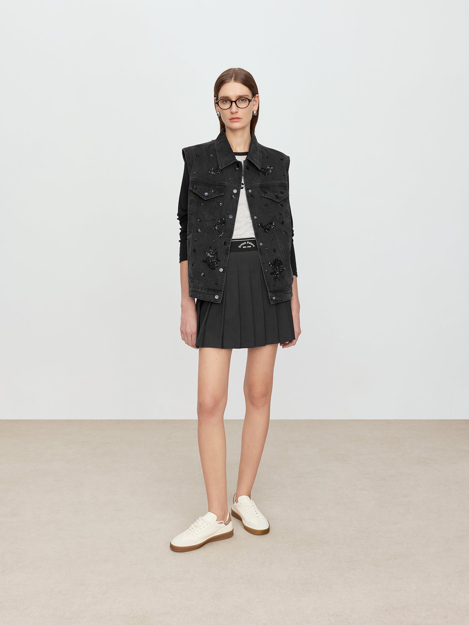 The three-dimensional pleats resembling piano keys outline a dynamic posture