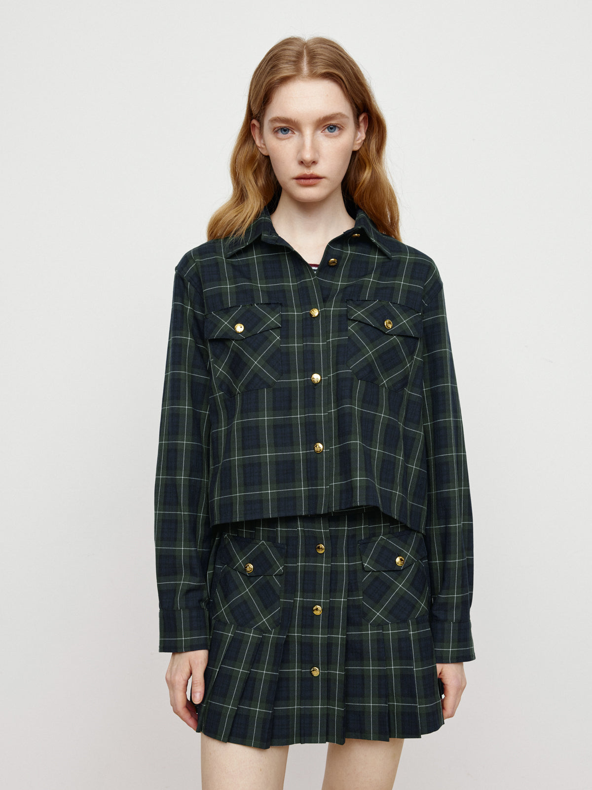 - Retro Green Grid College Shirt