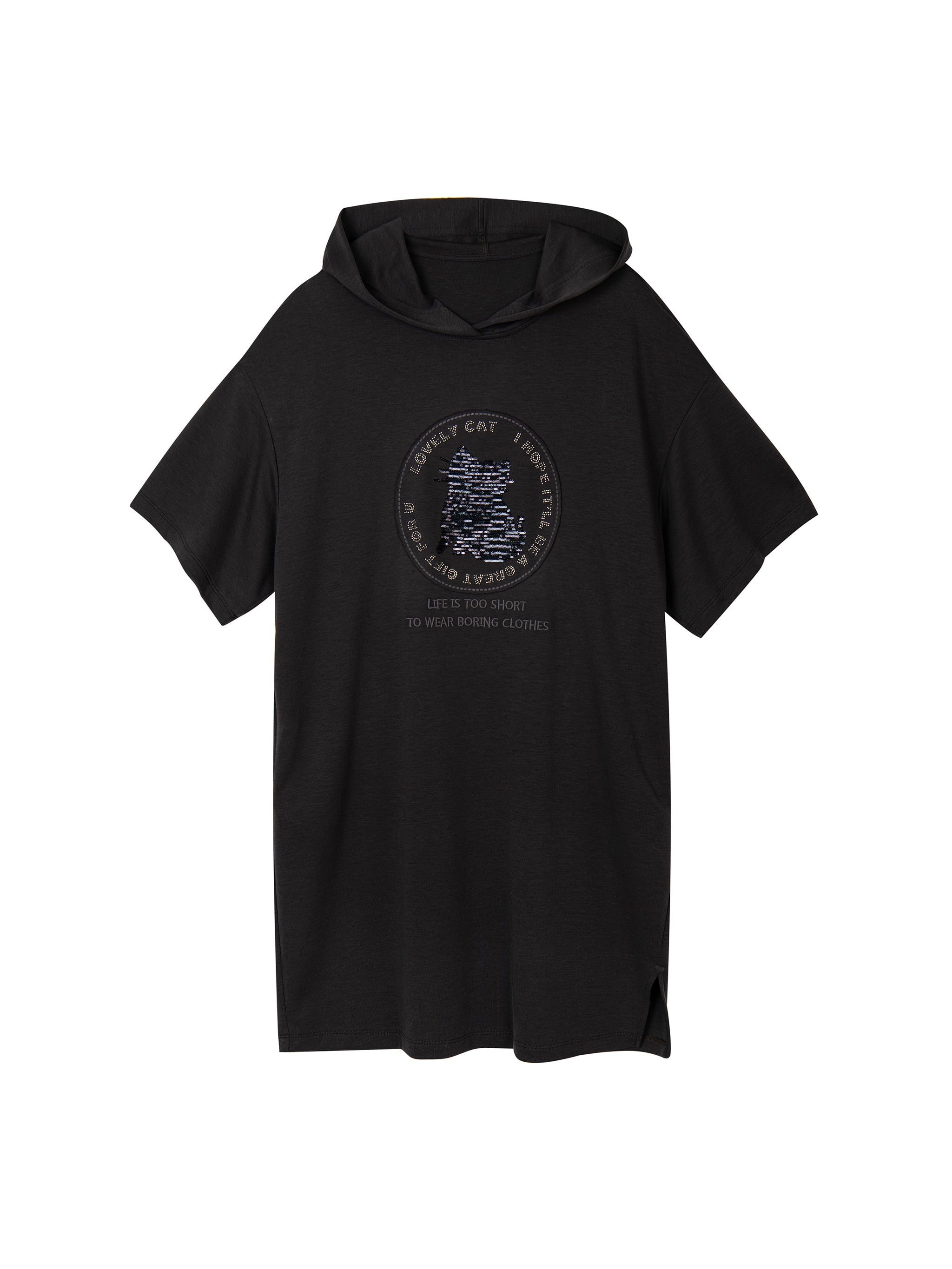 - Short sleeve hooded dress in carbon grey