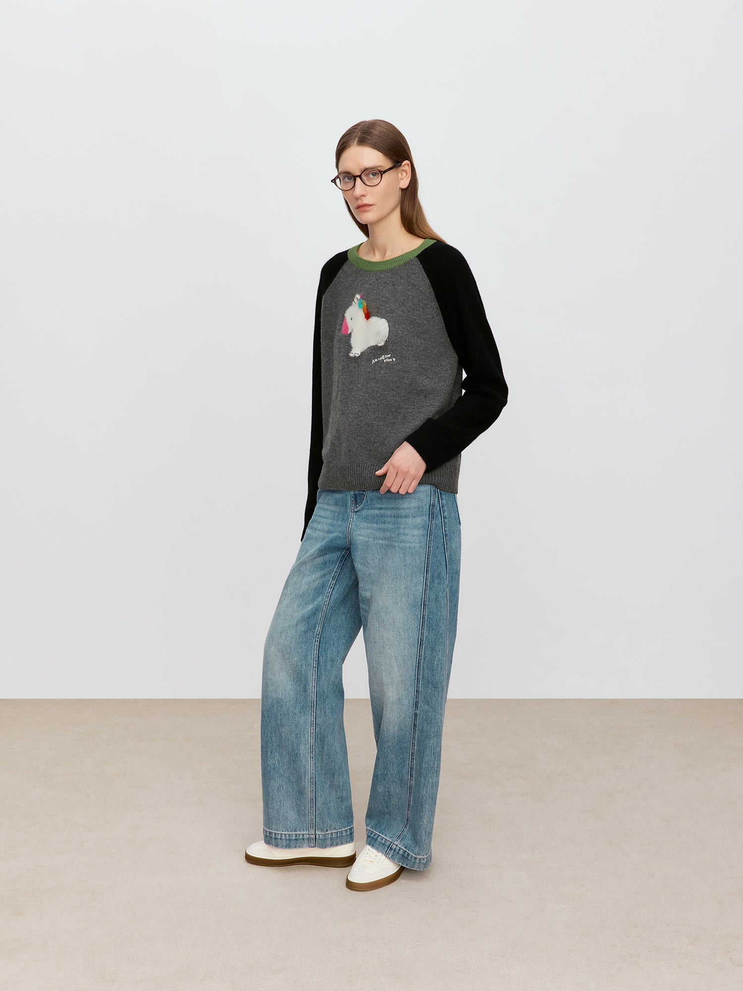 - Sunshine Rainbow Little White Horse Color Blocked Sweater