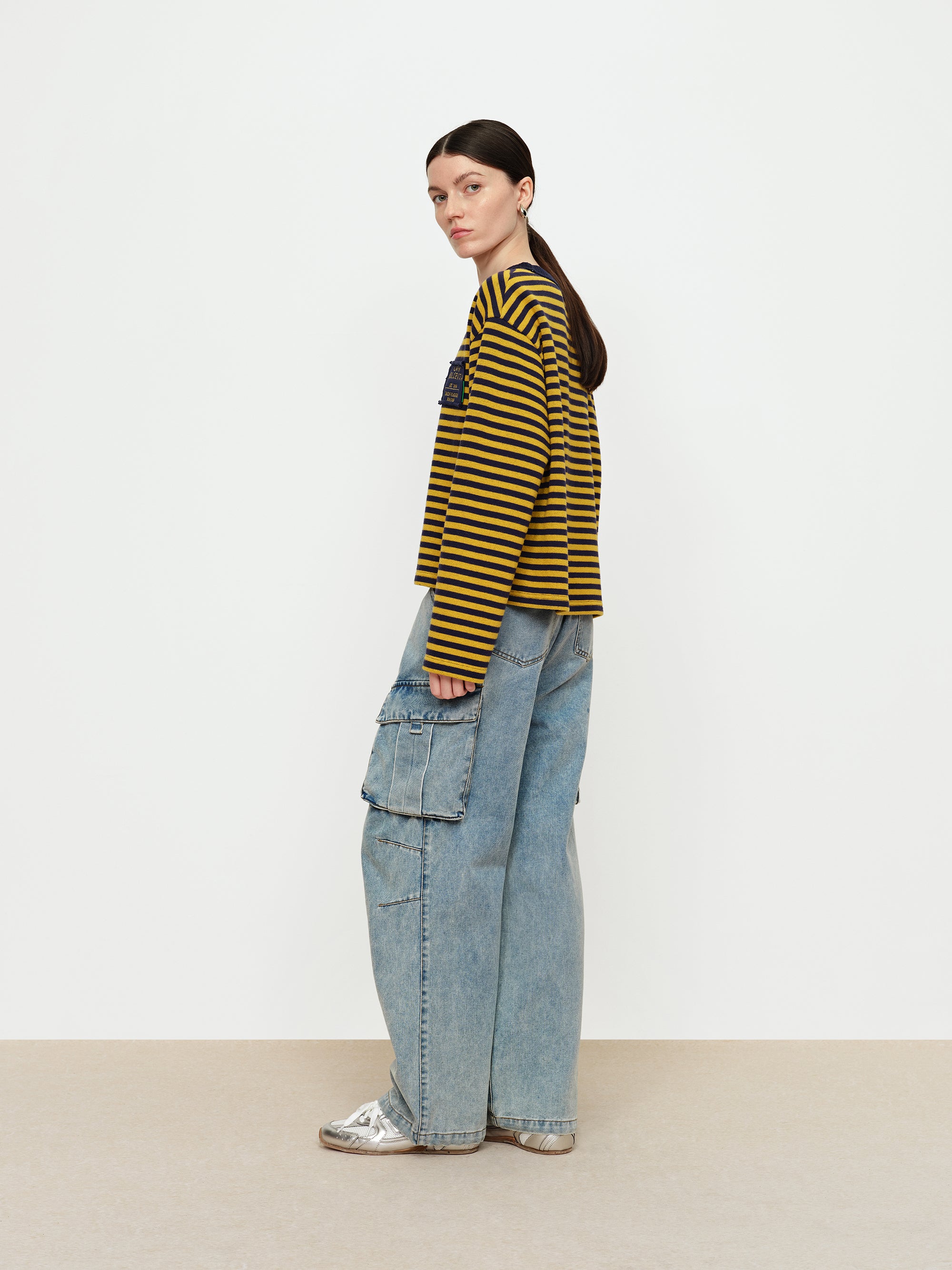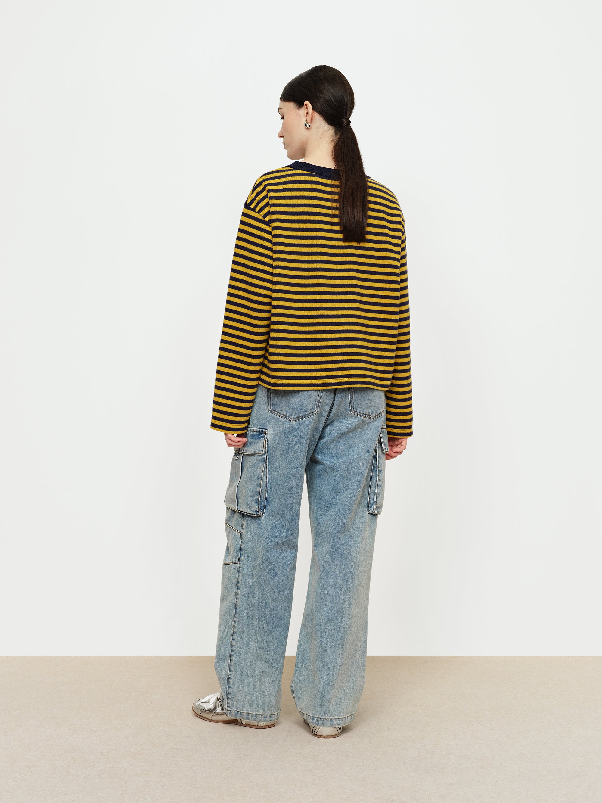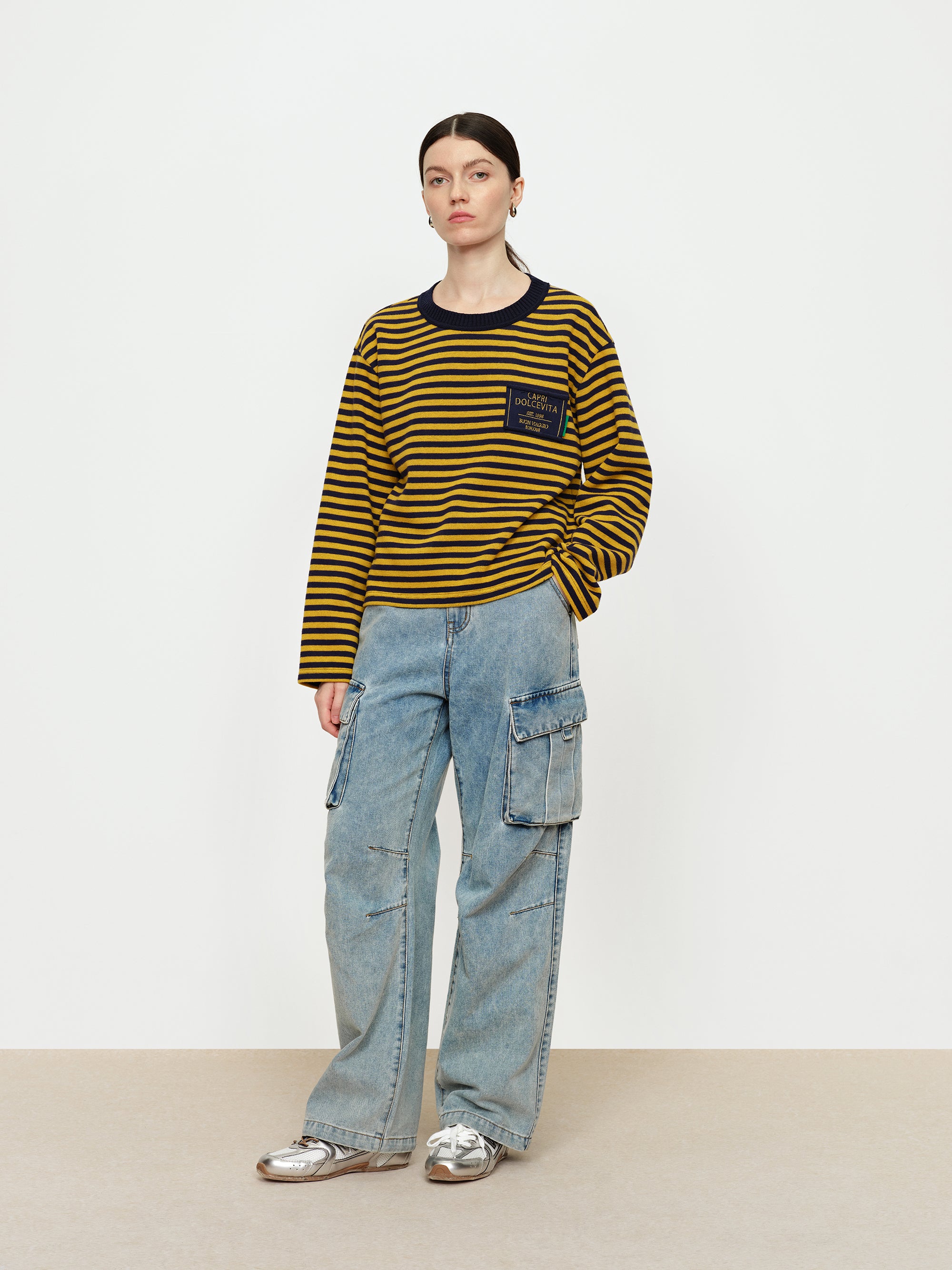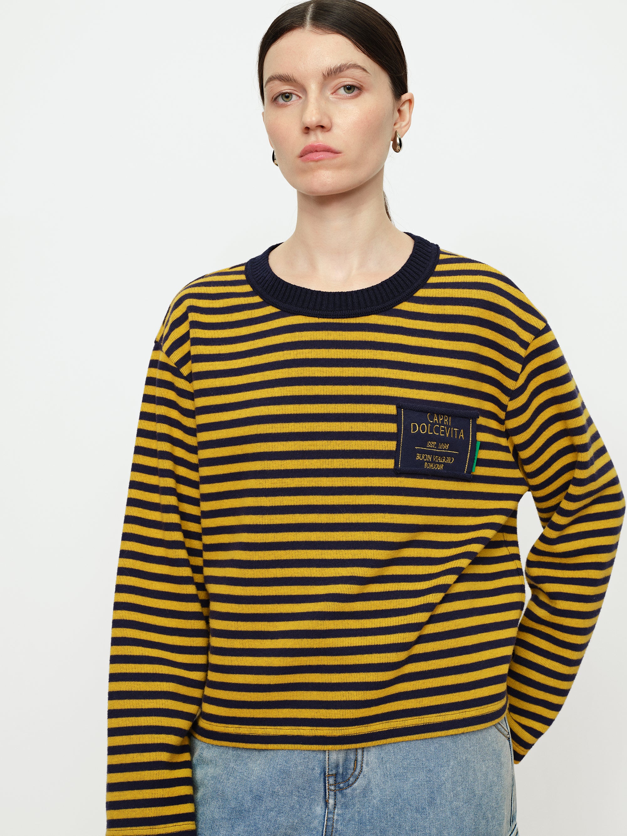 The combination of sunny and vibrant yellow with vintage navy blue creates a collision of light and dark, adding a touch of elegance to the lively and energetic atmosphere