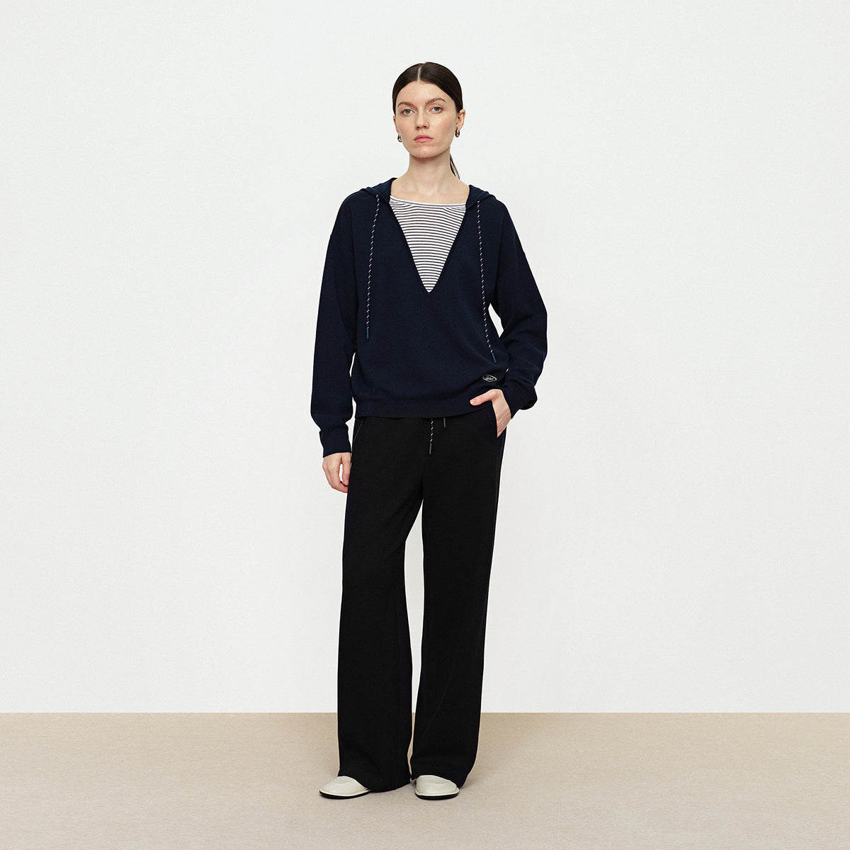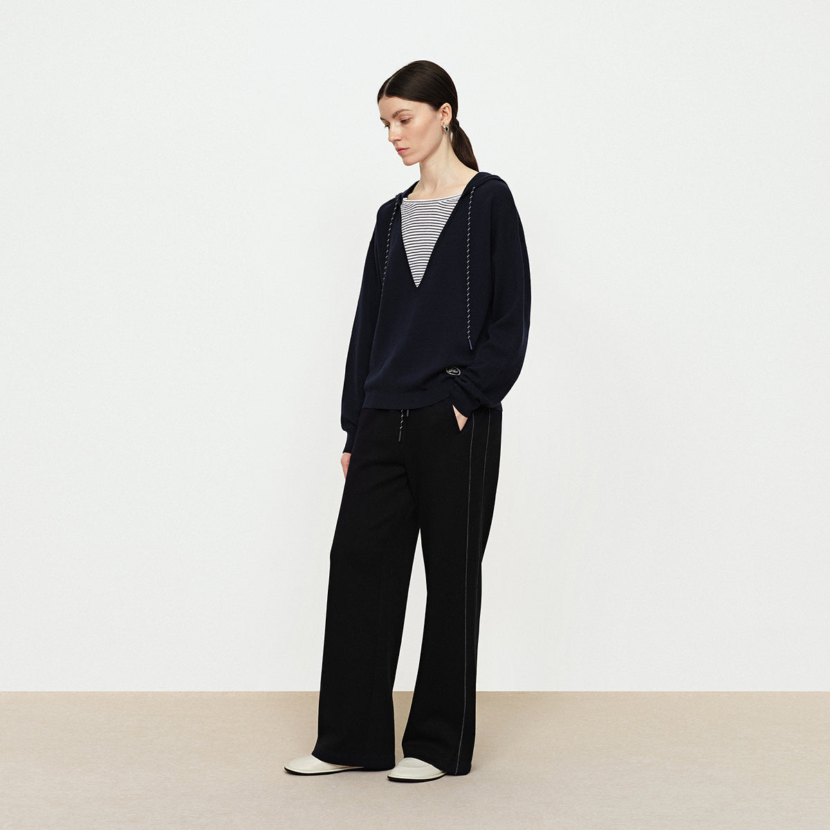 Decorative Thread Glutinous Rice Pants - Navy Blue