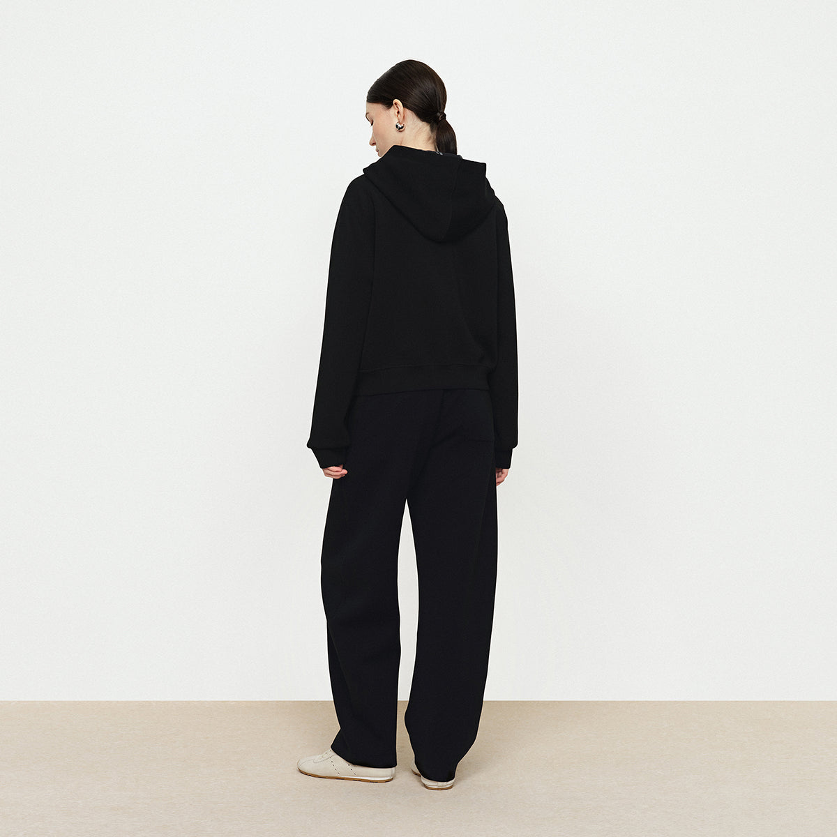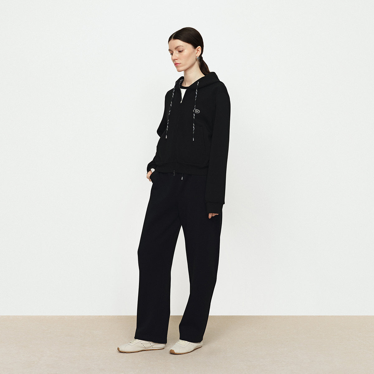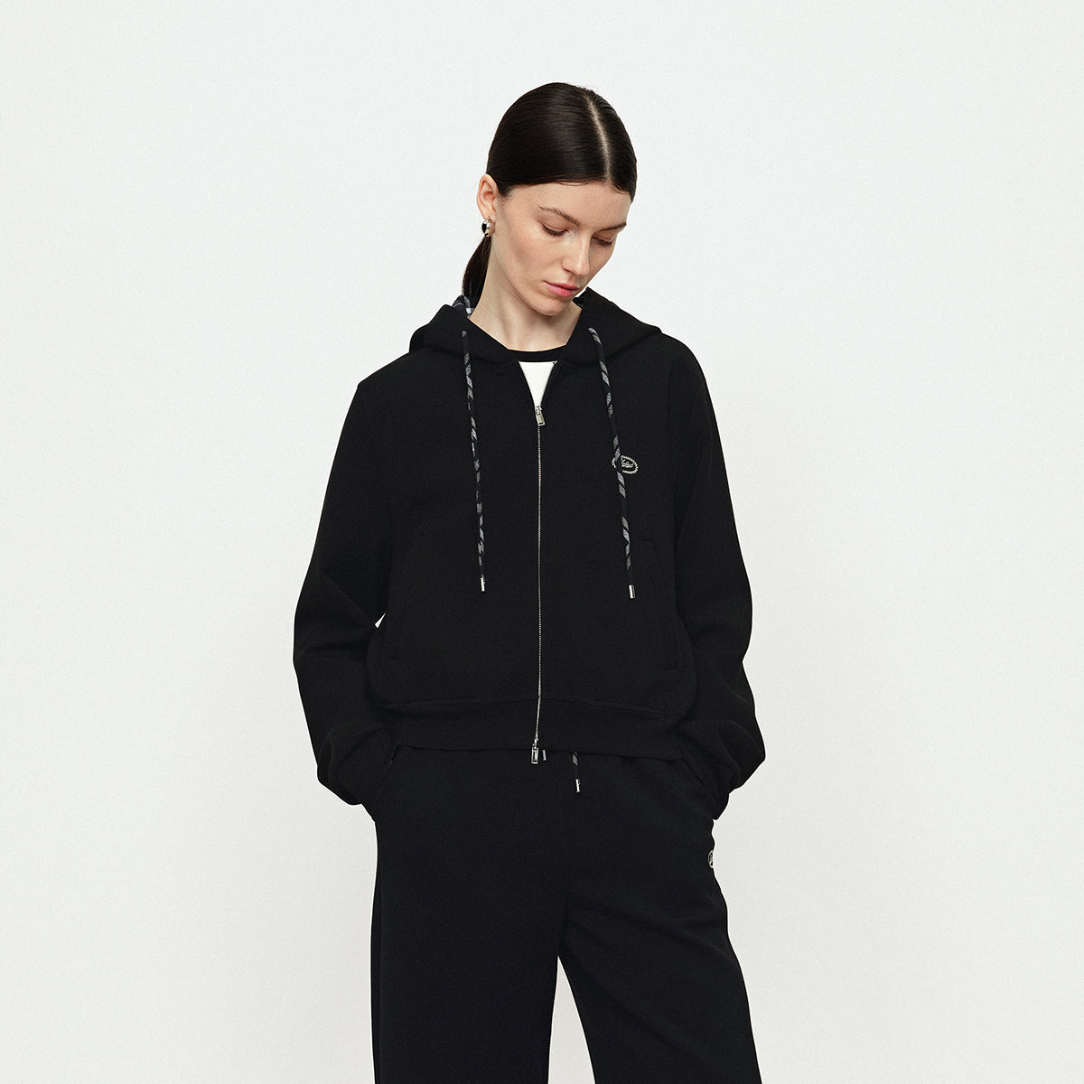 - Grid splicing short hooded zipper sweatshirt