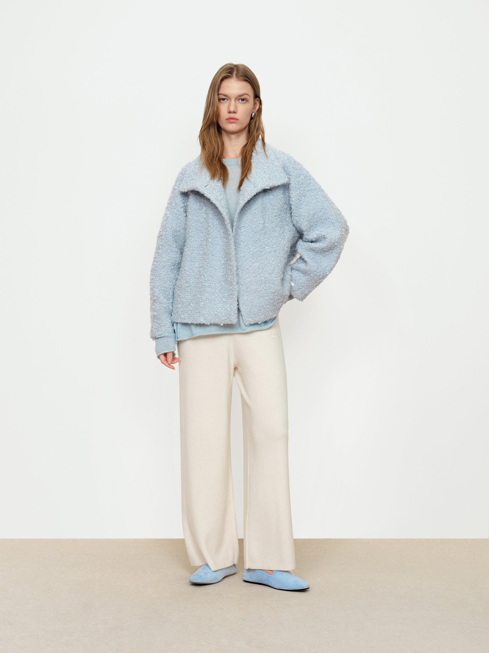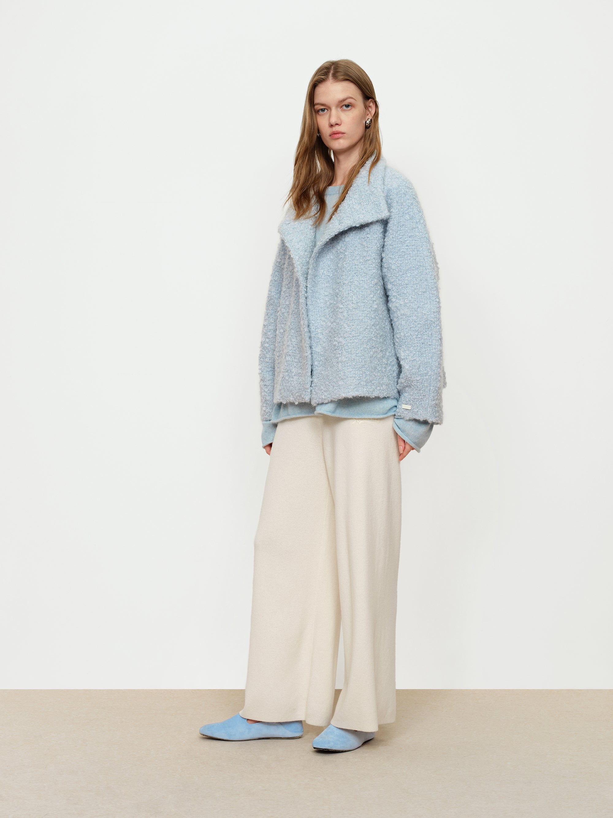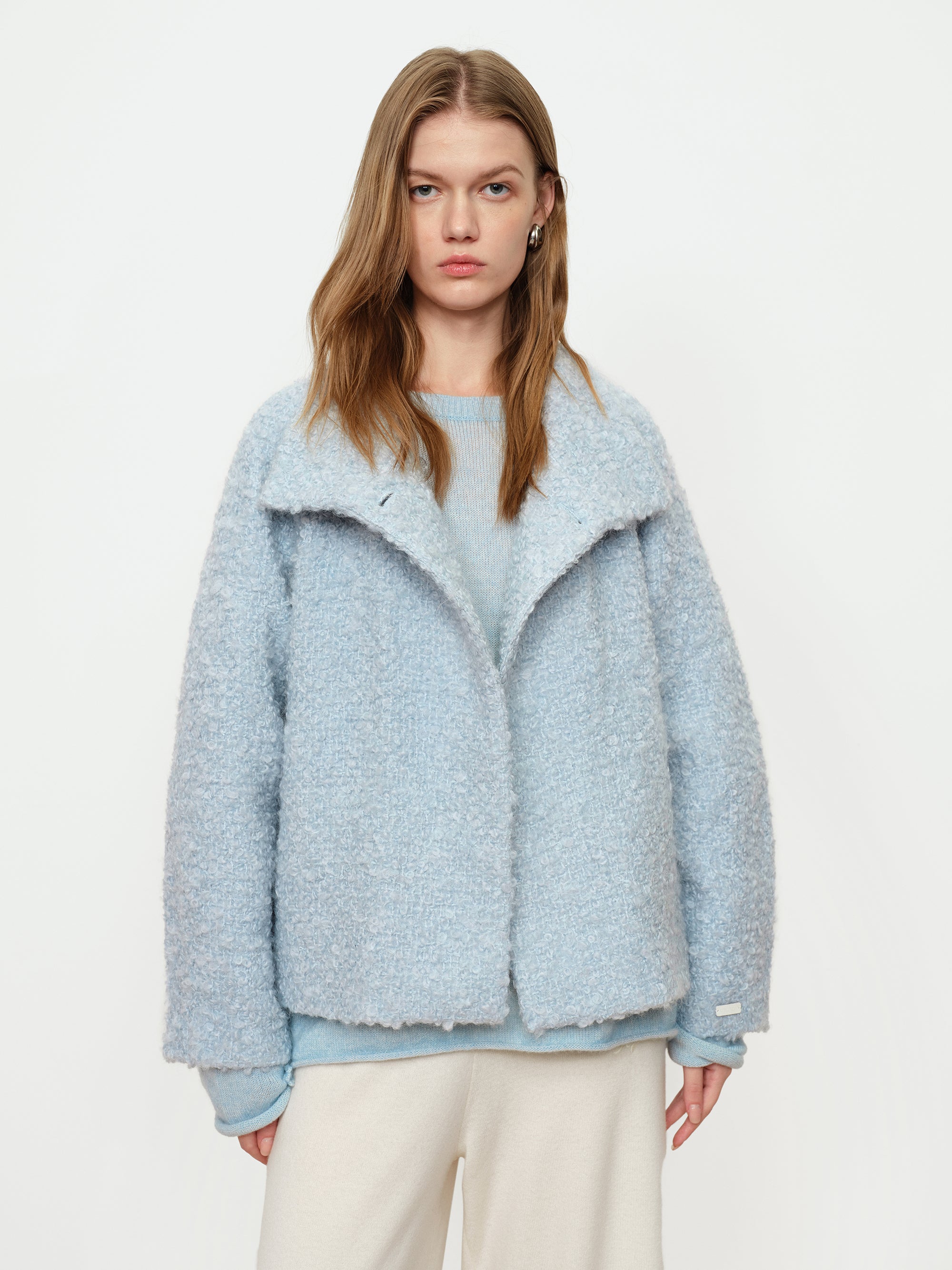 - Soft Fog Blue Looped Tweed Short Coat