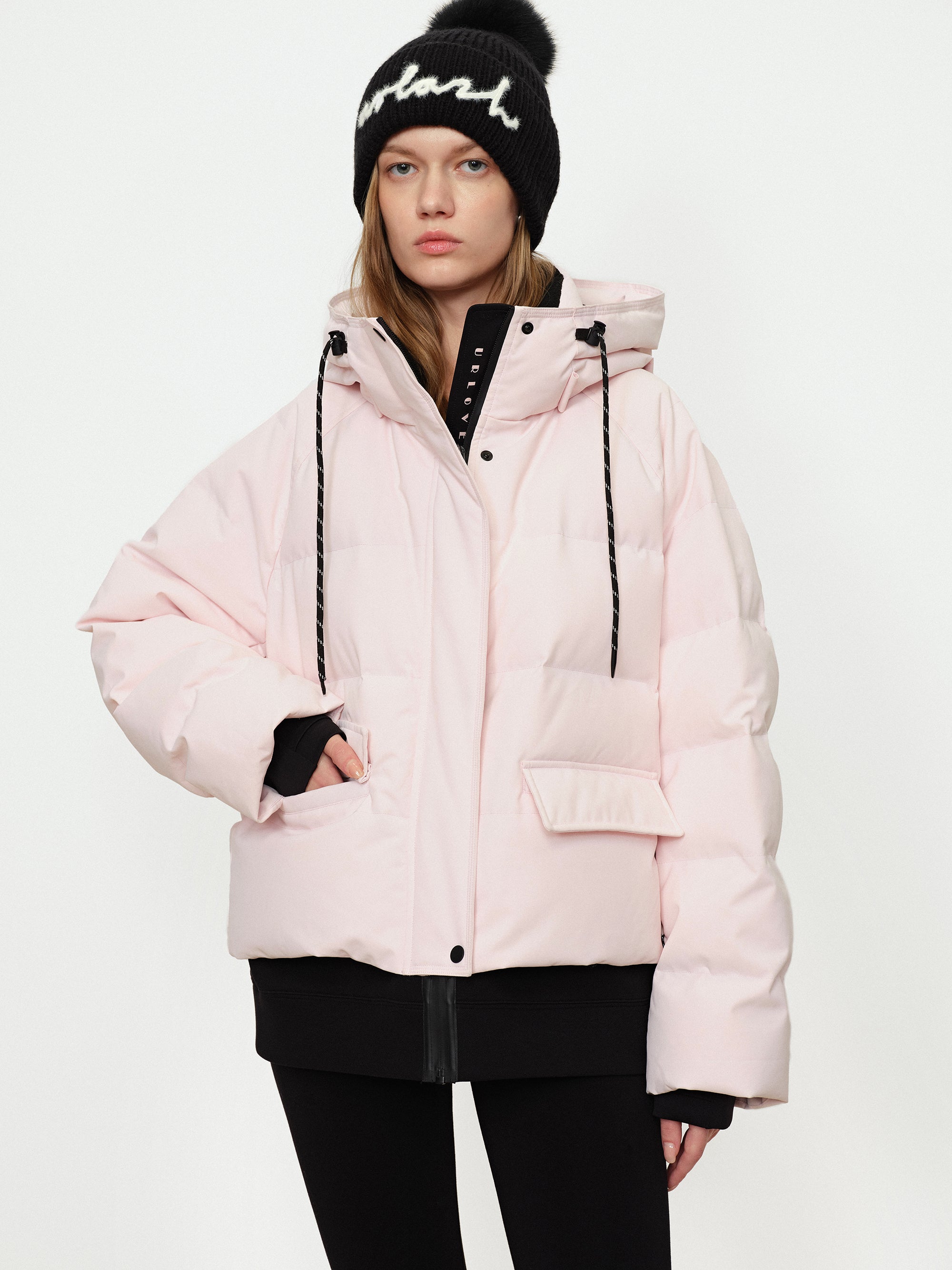 The hem is made of black fabric, creating a sweet and cool layering effect. The invisible drawstring is combined with the black cinched hem,